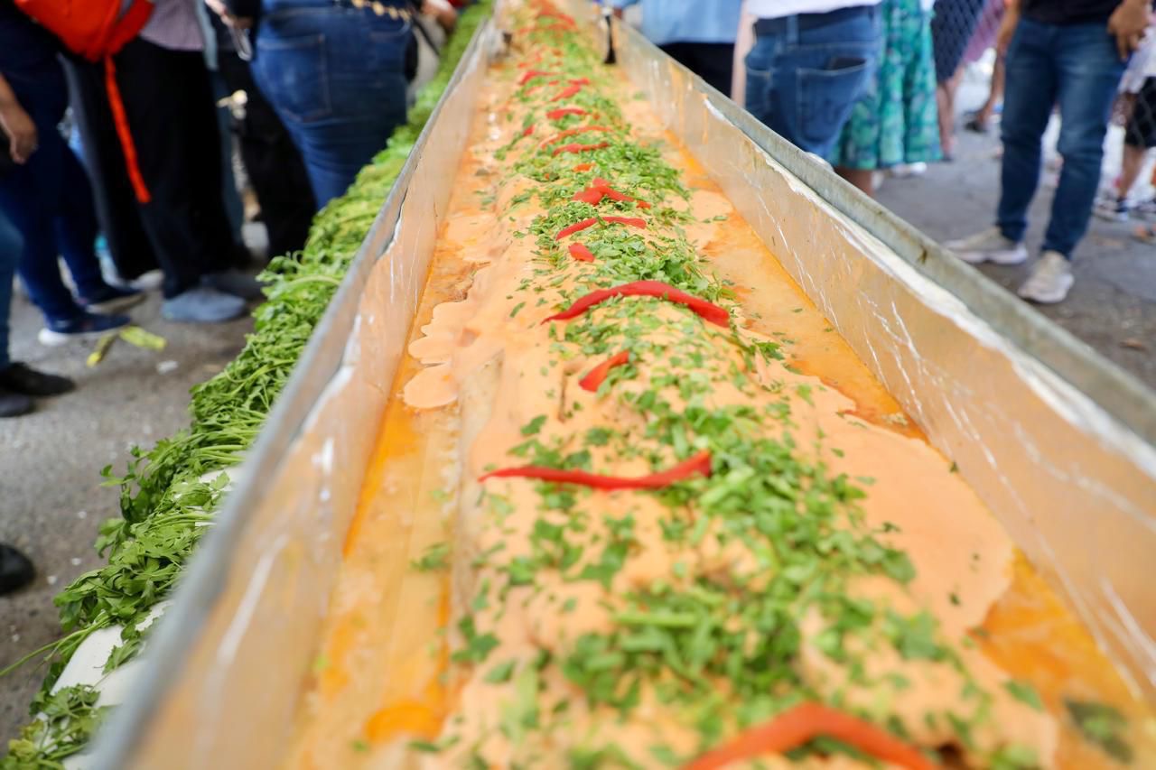 Un total de 200 personas participaron en la preparación de 100 metros del filete, con un grosor de 8 centímetros y un ancho de 20 centímetros.