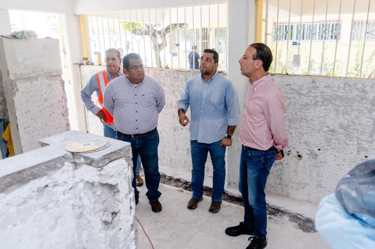 El alcalde Juan Manuel Unánue Abascal supervisó una vez más, los trabajos de la rehabilitación integral ahora en la Escuela Secundaria 4 “Ejército Mexicano”, acción que garantizará mejores condiciones de higiene y bienestar para los estudiantes.