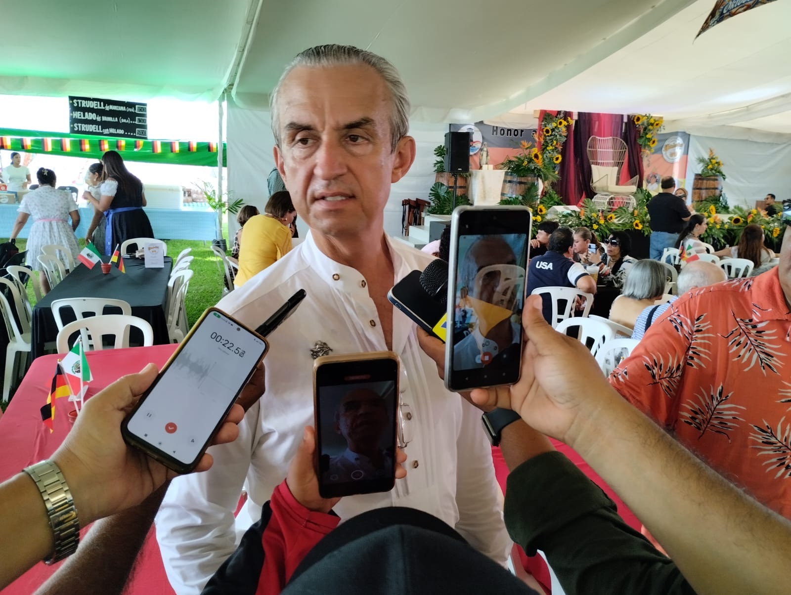 Jorge Marquinez Seemann, de los organizadores del evento junto con Astrid Acosta y Sandra Vazquez entre otros, advirtieron que el Oktoberfest es un festejo que se inició para quedarse y hoy en día asisten personalidades del mundo artístico, la política y la diplomacia.