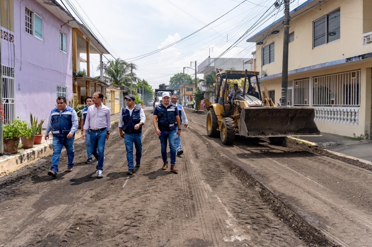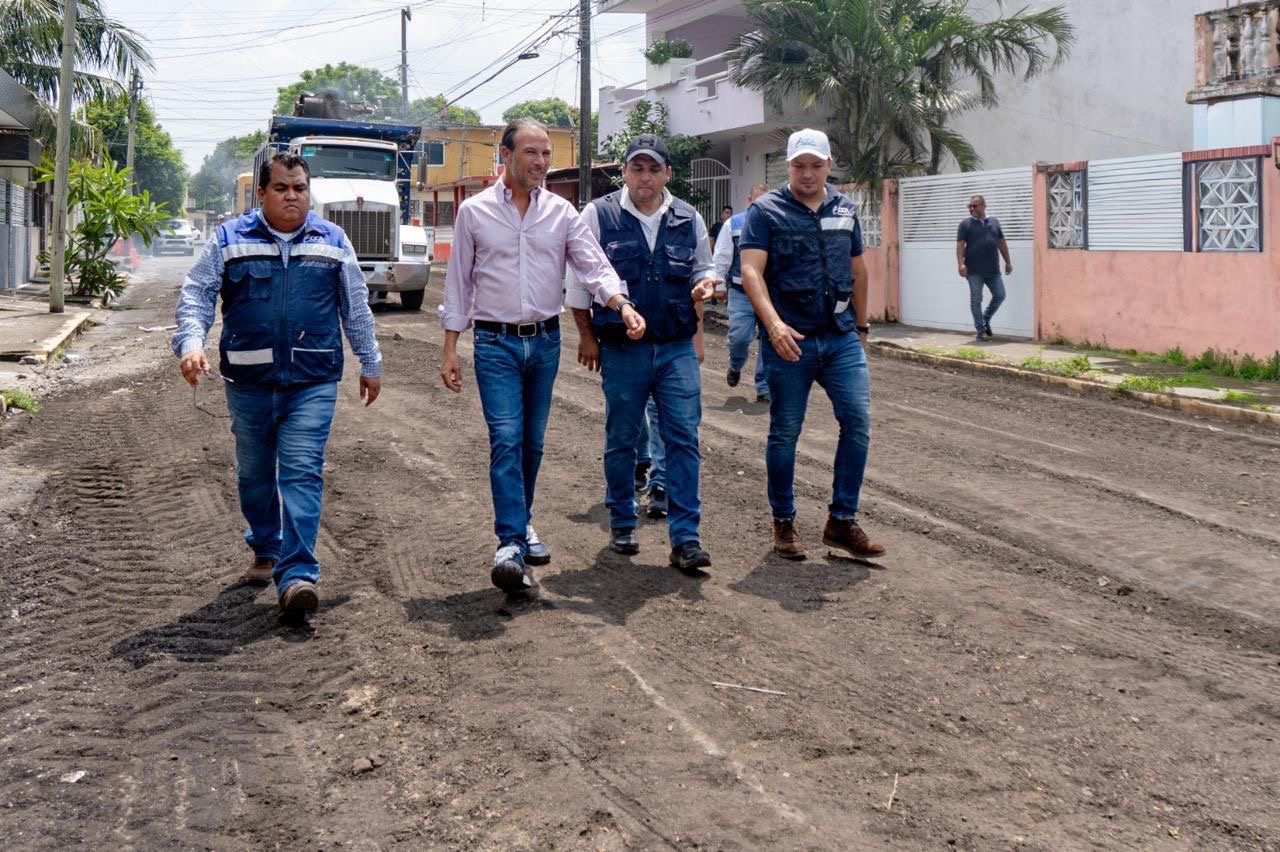 El alcalde de Boca del Río, Juan Manuel Unánue Abascal, supervisó los trabajos de rehabilitación de la calle Graciano Sánchez, una obra de beneficio directo para los habitantes de la colonia Ejido Primero de Mayo Norte.