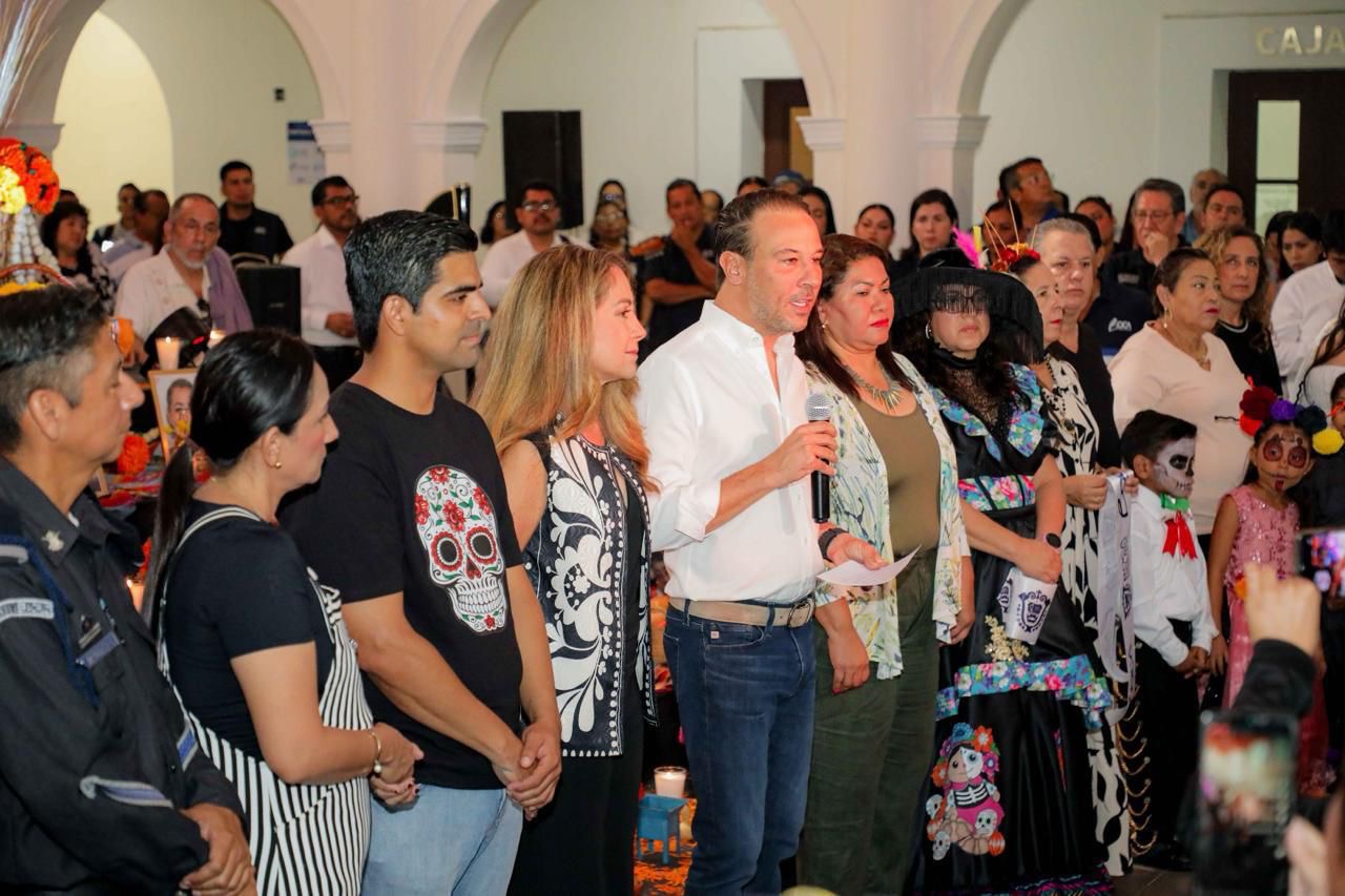 Posteriormente, el Presidente Municipal realizó un recorrido por los altares elaborados por diversas escuelas participantes, donde se impulsa el sentimiento y la cultura en torno a una de las fiestas más representativas de México. Estos altares se encuentran expuestos en los bajos del Palacio Municipal.