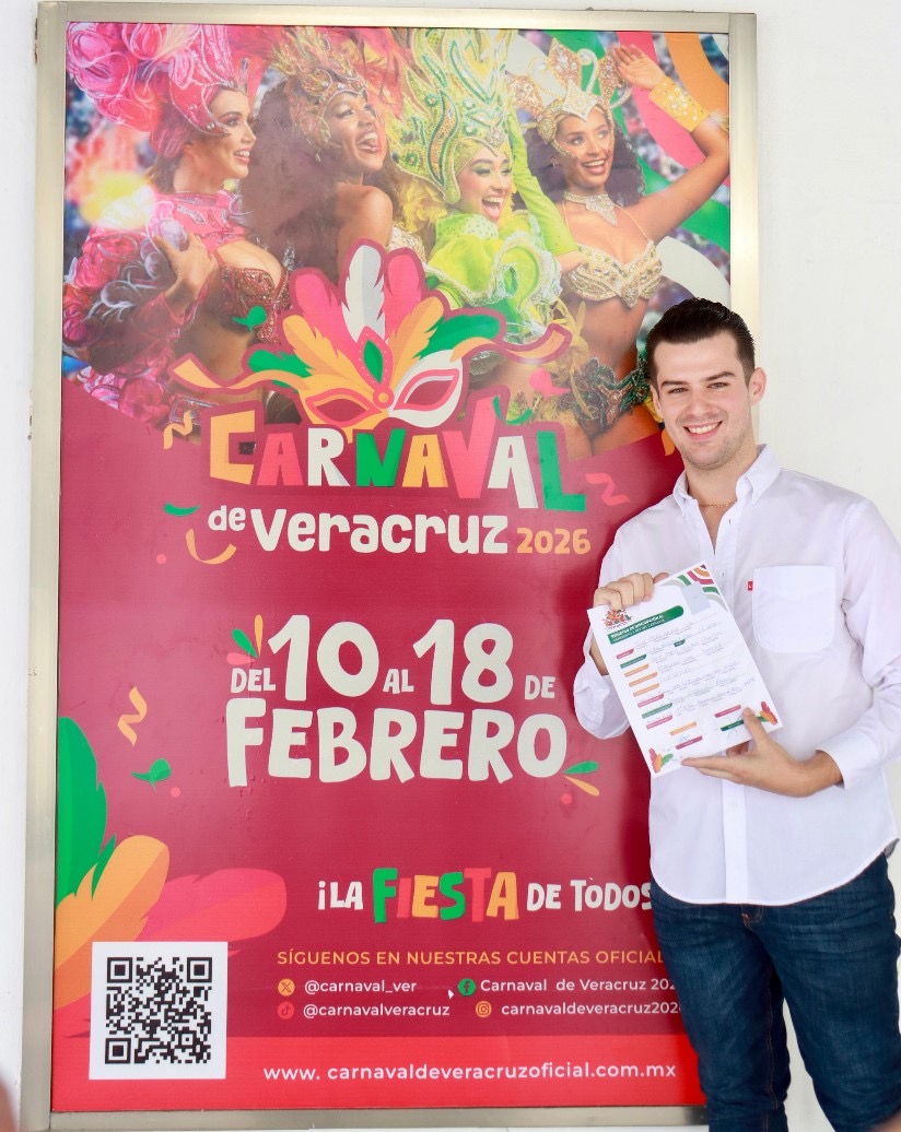 Veracruz, Ver., 15 de octubre de 2025.- José Mario Sánchez Ucha cumplió con el proceso administrativo de inscripción como candidato a Rey del Carnaval de Veracruz 2026, sumándose oficialmente a quienes aspiran a formar parte de la Corte Real de la fiesta más representativa del estado de Veracruz, que se realizará del 10 al 18 de febrero.