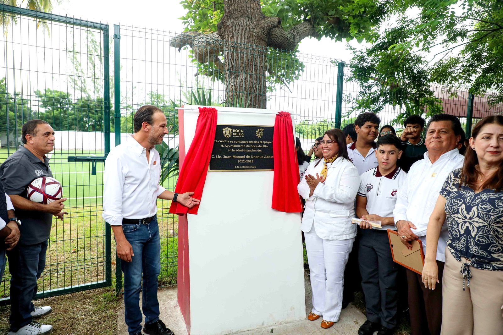 El Presidente Municipal de Boca del Río, Juan Manuel Unánue Abascal, inauguró la nueva cancha de fútbol con pasto sintético en el Centro de Bachillerato Tecnológico Industrial y de Servicios (CBTIS) 79, en el marco de las actividades por el 50 aniversario de esta institución educativa.
