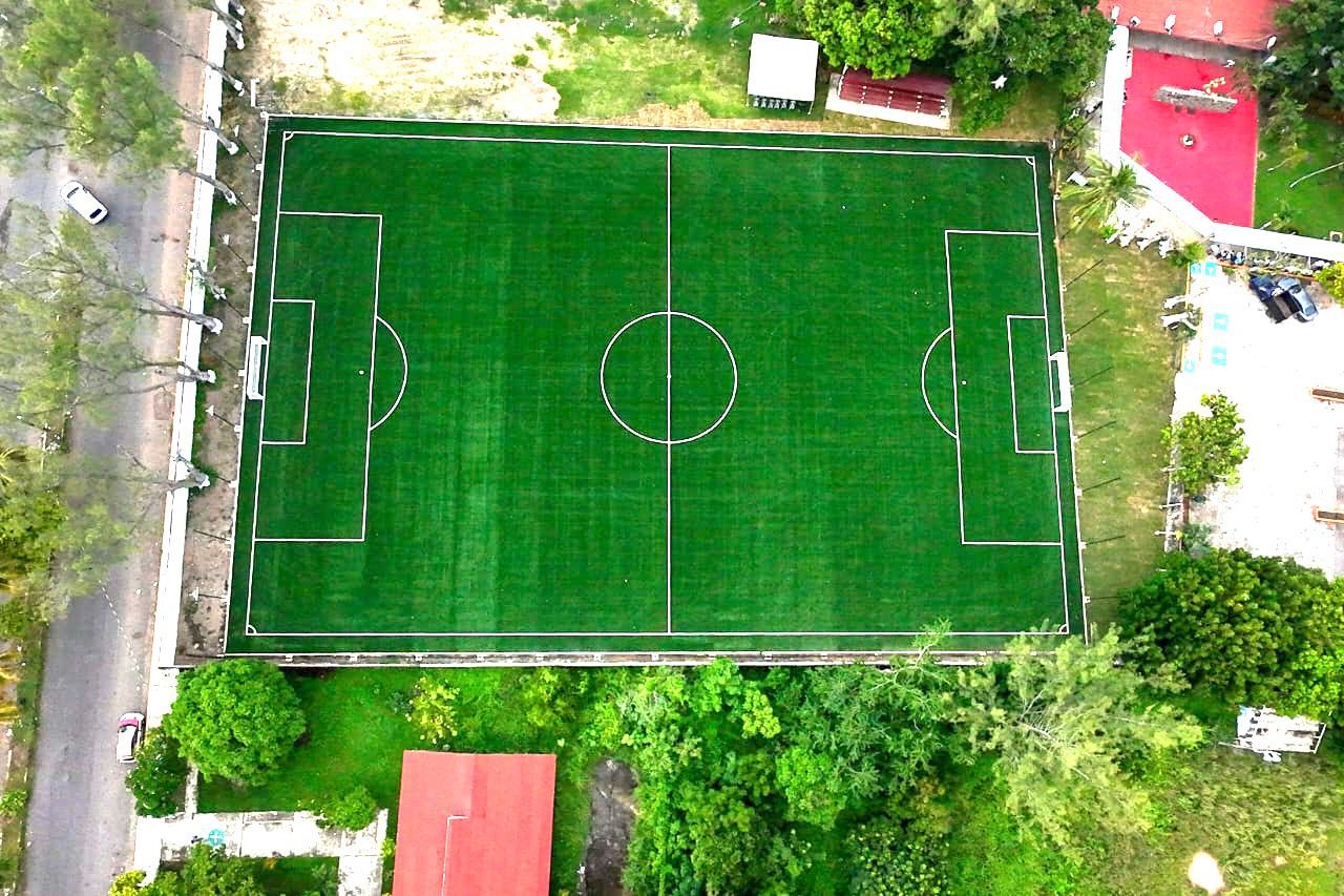 En la nueva cancha se colocaron más de 3 mil metros cuadrados de pasto sintético, se instalaron 2 porterías, 2 bancas deportivas y más de 30 tubos; además, se colocaron más de 160 metros lineales de malla atrapa balones reforzada, junto con otras acciones necesarias para su construcción.