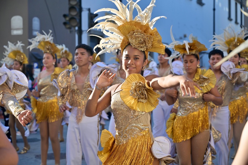 El ritmo de las batucadas Vasco de Gama y Nuevo Horizonte acompañará el paso del carro alegórico de la Corte Real actual, integrada por Juan Córdoba “Panda”, Rey del Carnaval, y los Reyes Infantiles Aryam Barrientos Reyes y Manolito Barbeito de la Vega.