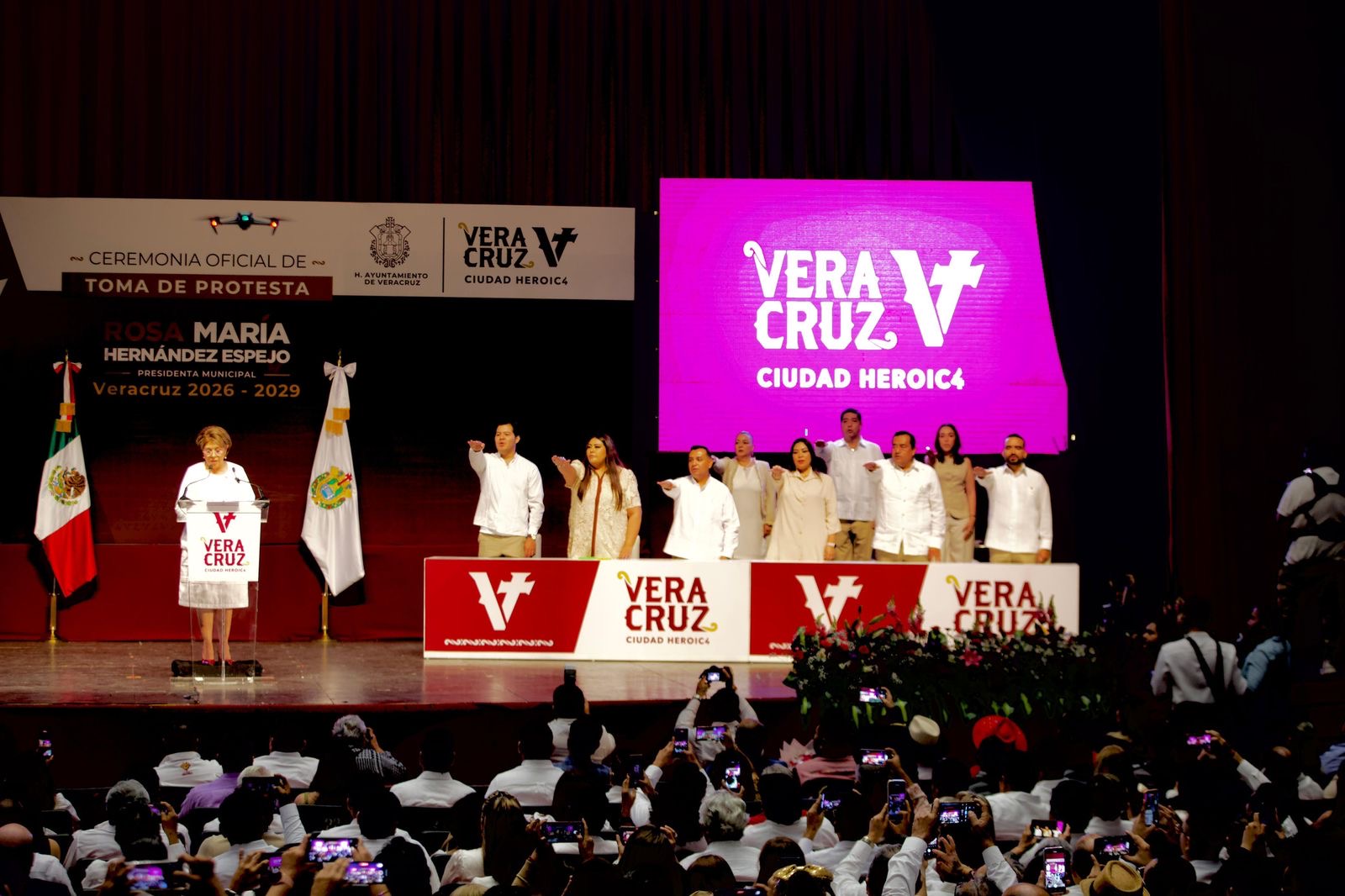 Hernández Espejo rindió protesta como presidenta municipal de Veracruz para el periodo 2026–2029, acompañada por la gobernadora de Veracruz, Rocío Nahle García, en un acto protocolario previo al inicio de funciones de la nueva administración municipal, el 1 de enero.