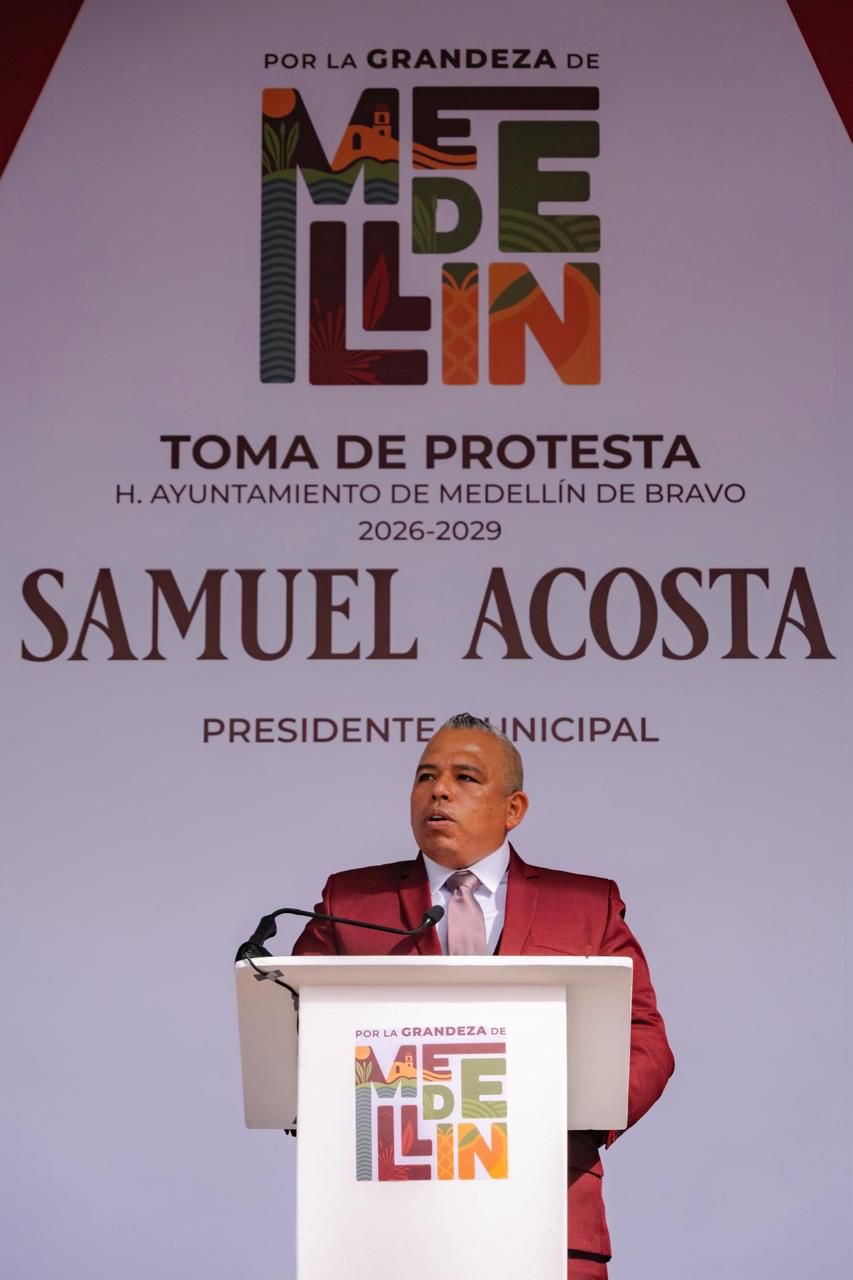 Medellín de Bravo, Veracruz; 31 de diciembre de 2025.– En un acto solemne y con la presencia de cientos de ciudadanas y ciudadanos, Samuel Acosta rindió protesta la mañana de este martes como Presidente Municipal de Medellín de Bravo, asumiendo formalmente la responsabilidad de encabezar la administración pública municipal para el periodo constitucional 2026-2029.