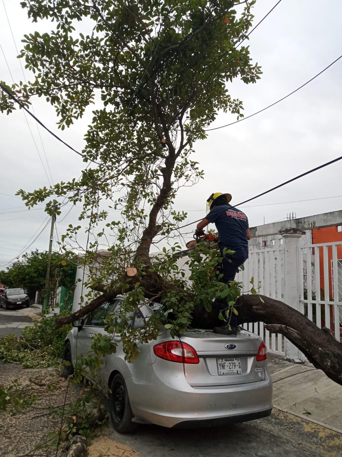 Derivado de las fuertes rachas de viento registradas durante la madrugada de este sábado por la presencia del Frente Frío No. 32 en la ciudad de Veracruz, personal de Protección Civil Municipal atendió la caída de tres árboles en distintos puntos de la ciudad, uno de ellos sobre un vehículo, sin que se reportaran personas lesionadas.