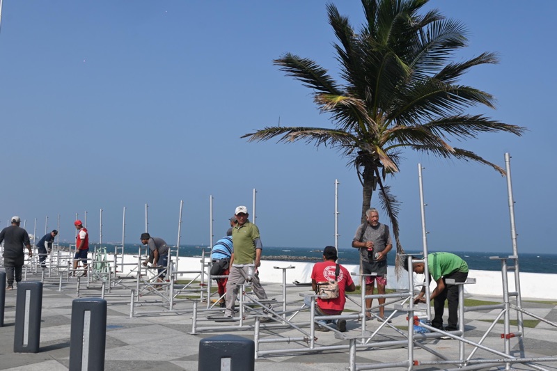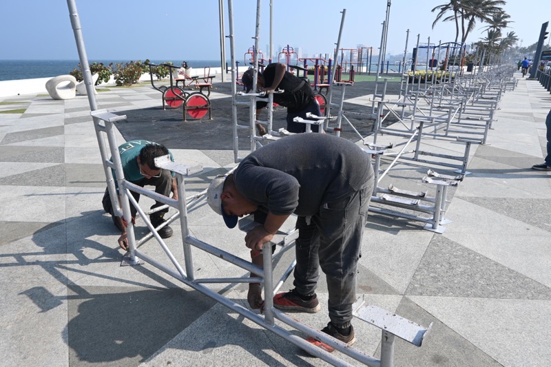 El director de Turismo y Carnaval del H. Ayuntamiento de Veracruz, Daniel Martín Lois, informó que estas labores iniciaron del lado del mar, continuando en el camellón central para cubrir un total de 3.5 kilómetros, y que las gradas estarán listas para la inspección de Protección Civil municipal días antes del primer desfile.