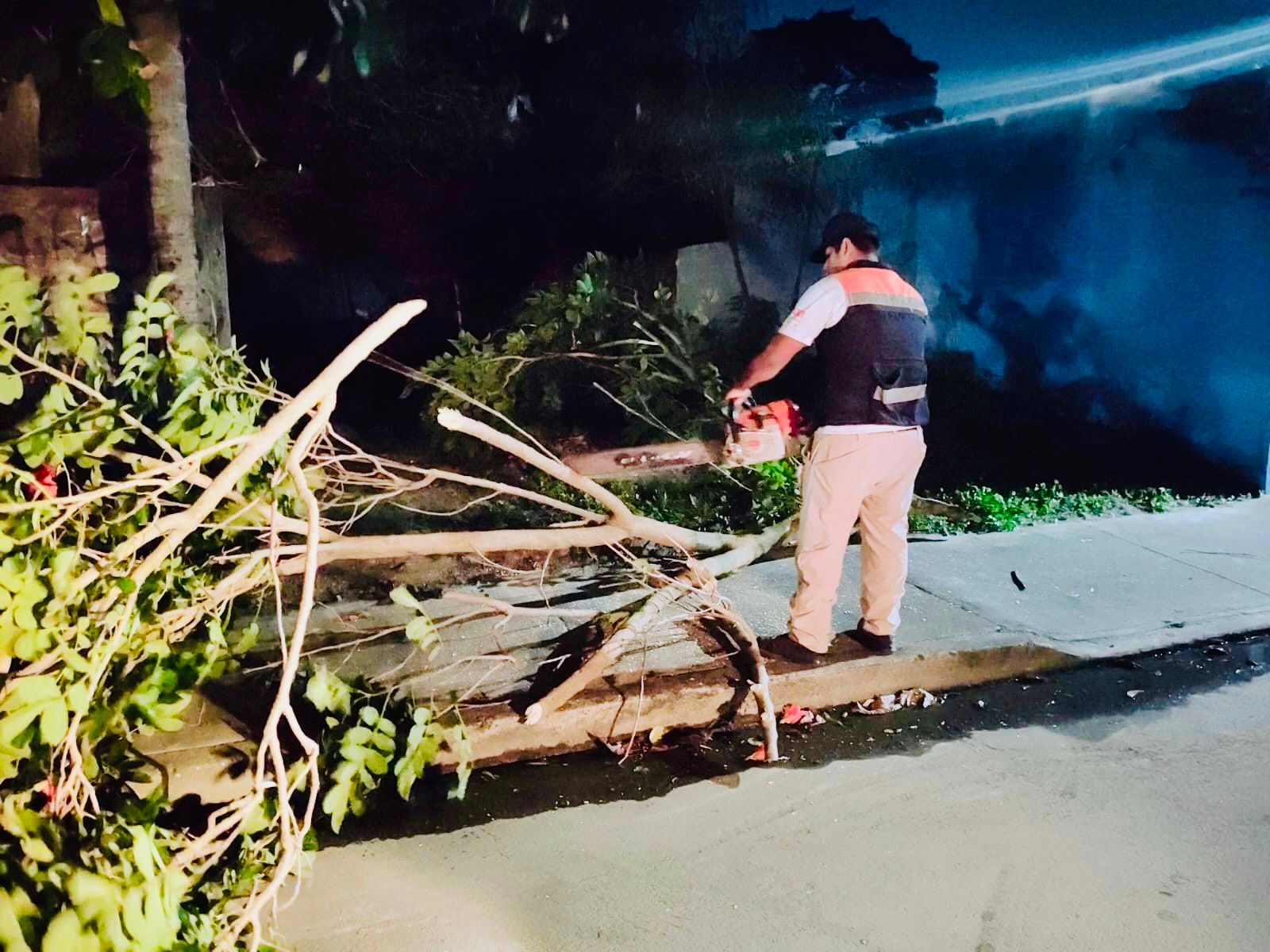 El director de Protección Civil, Antonio Rosas, informó que el personal se encuentra desplegado en distintos puntos del municipio, realizando labores de retiro de árboles y ramas, así como la evaluación de posibles riesgos en zonas vulnerables, trabajando de manera coordinada con otras áreas del Ayuntamiento cuando la situación lo requiere.