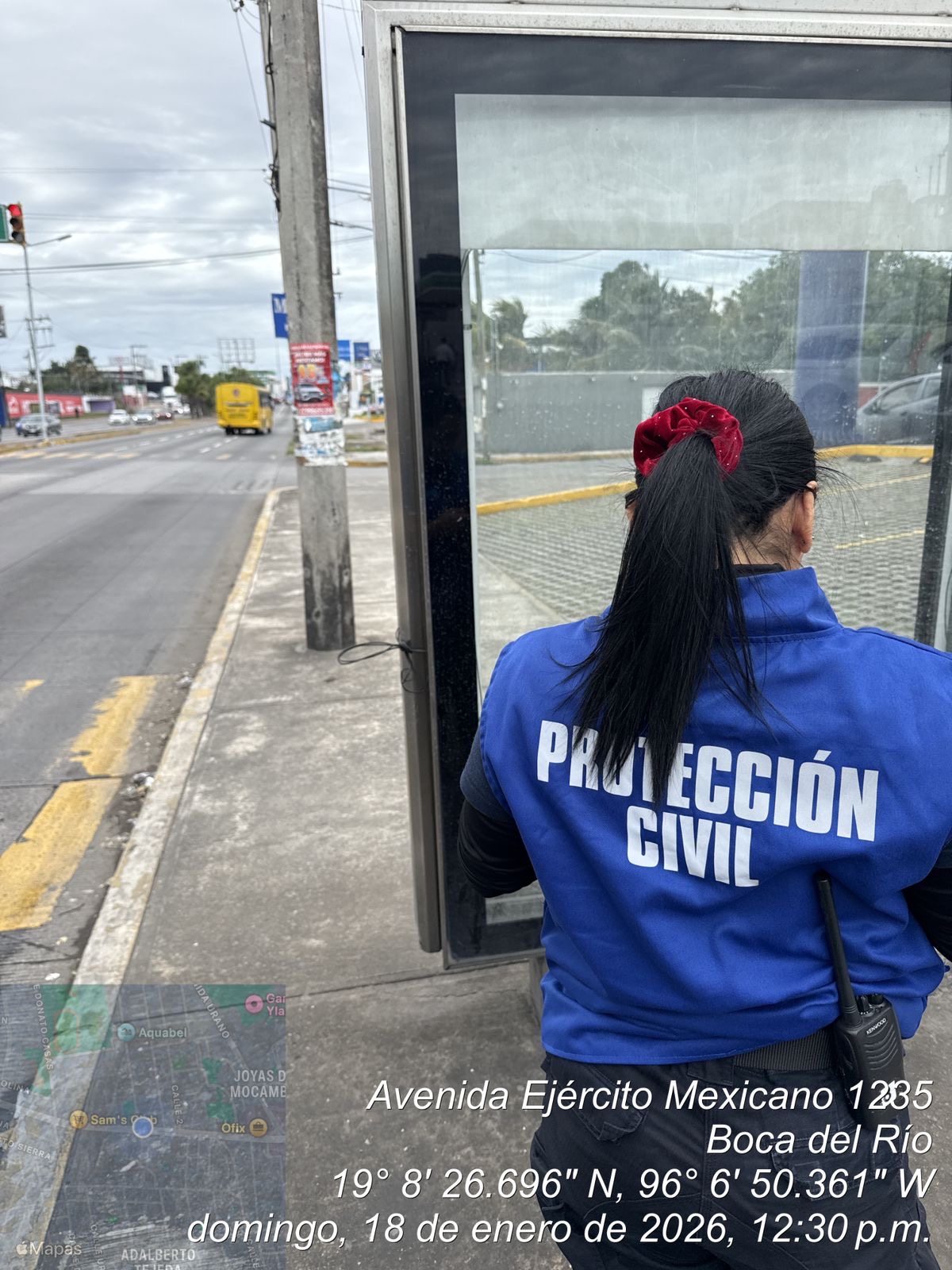 La Dirección de Protección Civil Municipal atendió oportunamente la afectación de dos parabuses, en los que se registraron desprendimientos de estructuras, mismas que fueron aseguradas para evitar riesgos.