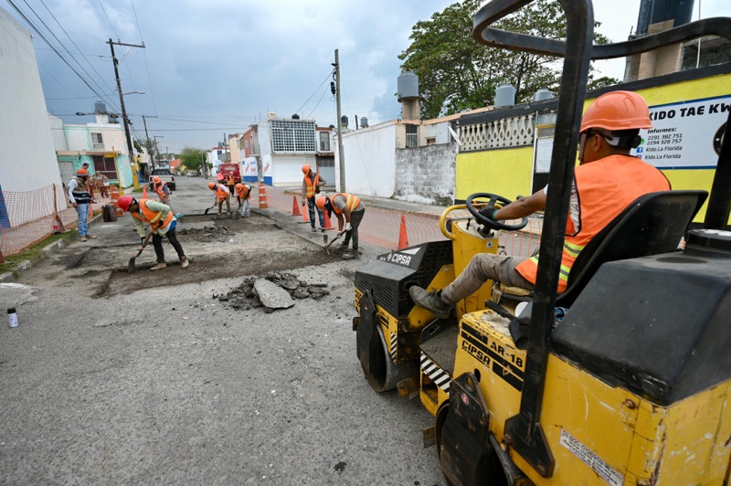 La presidenta municipal de Veracruz, Rosa María Hernández Espejo, supervisó este jueves los trabajos del Programa Municipal de Bacheo en el Fraccionamiento La Florida y reiteró que al finalizar febrero se cumplirá la meta de atender 65 mil baches, como parte de la primera etapa de esta estrategia integral.