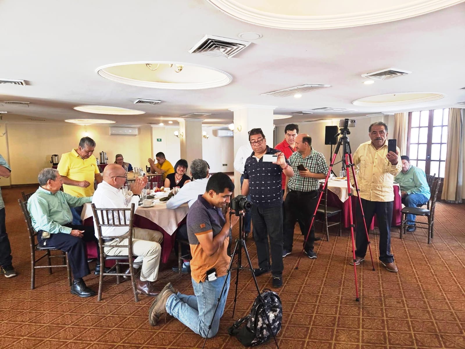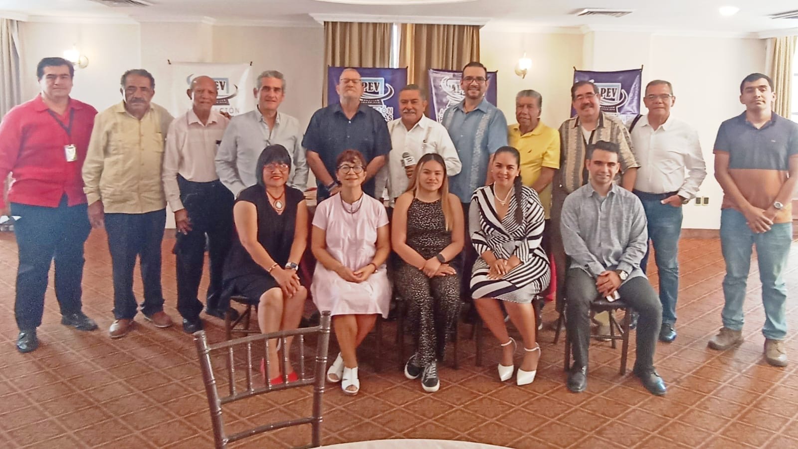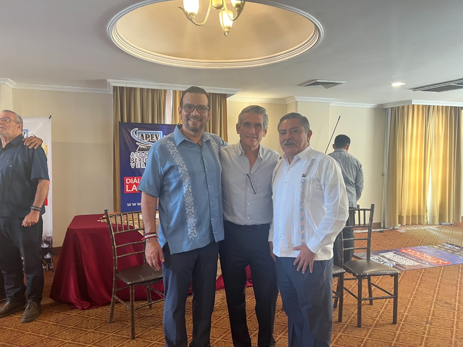 Se le dio la bienvenida como nuevo asociado de la APEV al periodista Ignacio Álvarez Calzada y de igual forma asistieron los promotores musicales Pedro Bustos de La Tlacotalpeña, Paul Porter de Karabaly Orquesta y el servicio de El Estribo del Hotel Diligencias.