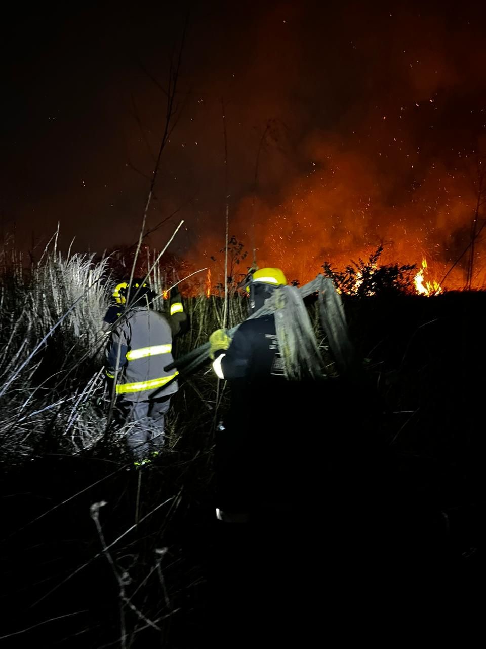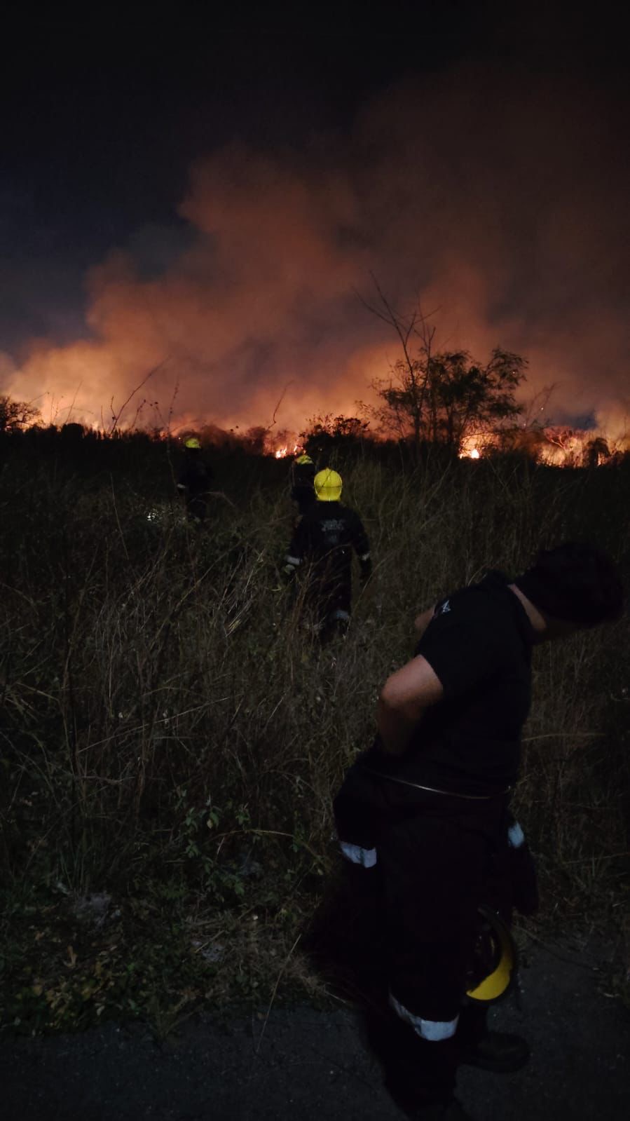 Personal del Heroico Cuerpo de Bomberos y de Protección Civil municipal de Veracruz atienden el incendio de un pastizal en la zona del fraccionamiento Nuevo Veracruz, que también abarcó parte de Las Bajadas y Albatros, y que había sido controlado previamente, antes de que los equipos se trasladaran a atender otro conato en la zona de Xana.