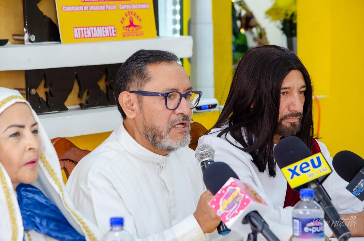 En conferencia de prensa realizada la mañana de este día en el restaurante El Recreo, el Padre Guillermo Arturo Ramírez Martínez, junto a los protagonistas de esta escenificación: María Teresa Saavedra (Virgen María), Abraham Alatriste (Jesucristo) y Víctor Hugo Espinosa (Soldado), extendió una cálida invitación para ser testigos de este sacrificio de amor. No se trata solo de teatro; son más de 40 personas quienes, sin ser actores profesionales, entregan su voz y su cuerpo movidos únicamente por un amor infinito a Jesucristo.