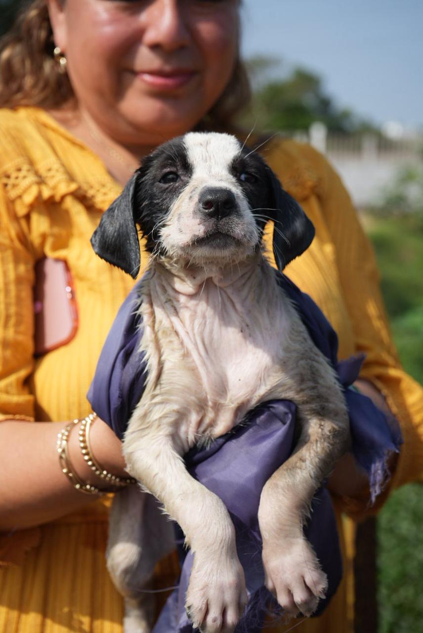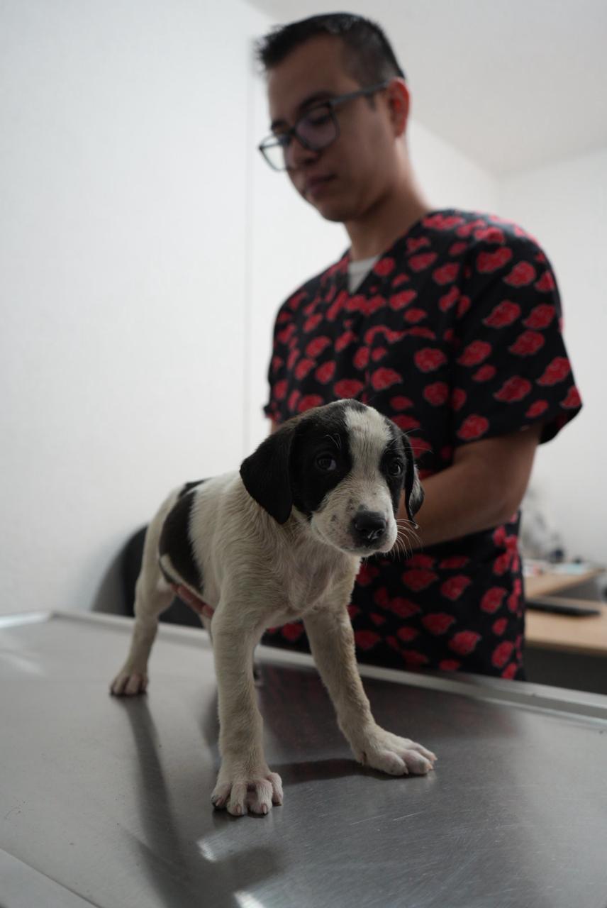 Una vez rescatada, la cachorrita de aproximadamente dos meses de edad fue trasladada a la clínica veterinaria Patitas Traviesas, donde recibió atención médica para valorar su estado de salud y se le administraron los medicamentos correspondientes.
