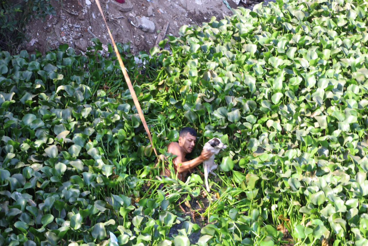 Medellín de Bravo, Ver.— La Dirección de Protección Civil de Medellín de Bravo, a cargo de Antonio Rosas Delon, realizó el rescate de una cachorrita que se encontraba atrapada entre el lirio dentro del Arroyo Moreno, durante la mañana de este día.